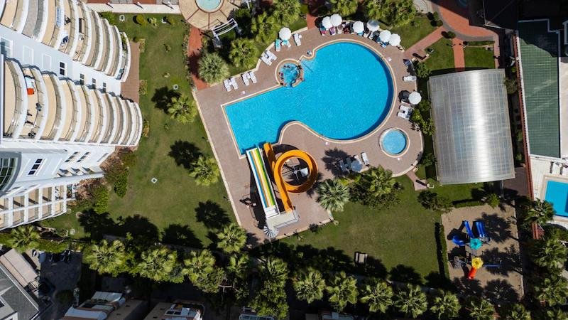Dieser charmante Taya Park Komplex liegt in der wunderschönen Küstenstadt Alanya in der Türkei, nur 600 Meter vom atemberaubenden Mittelmeer entfernt.