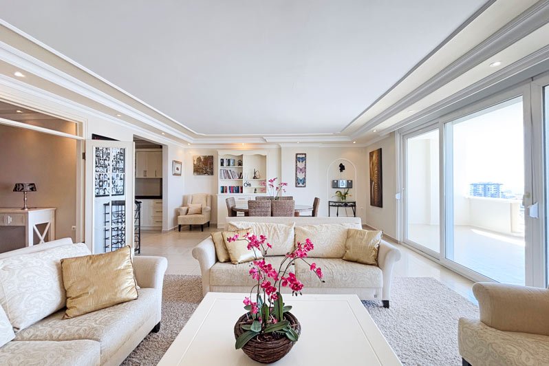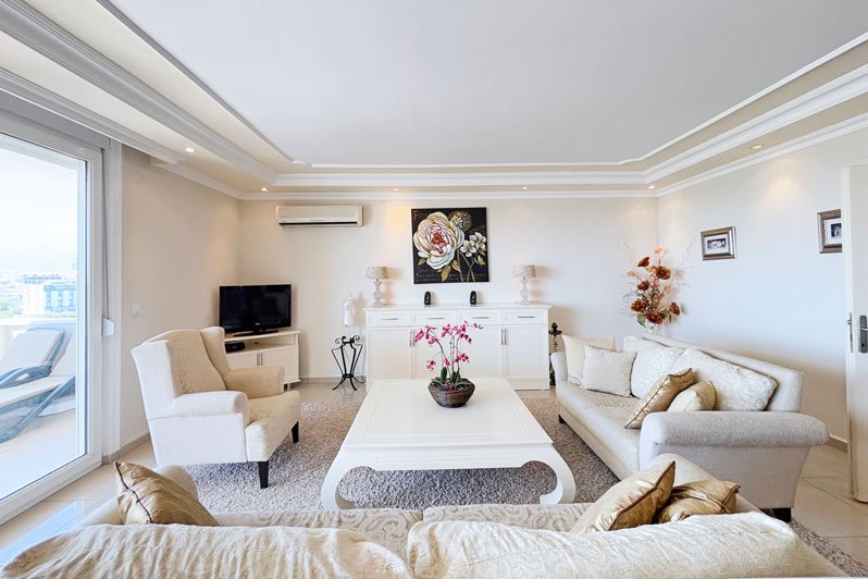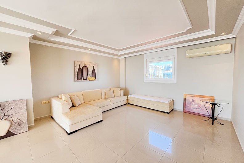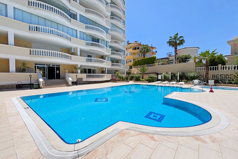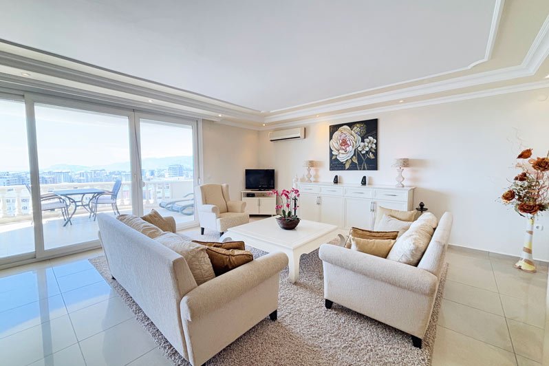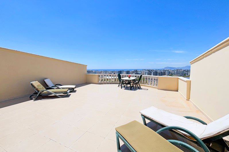Die Gold 3 Wohnanlage besteht aus 10 Villen und aus einem 9 Etagen Blok mit 40 Wohnungen. Eine beeindruckende Penthouse-Wohnung mit 3 Schlafzimmern in einer exklusiven Anlage in einer begehrten Gegend von Mahmutlar, Alanya.
