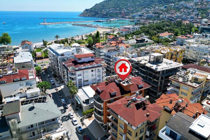 Property ID :AH90 For sale 235000€ - Penthouse 220 m2 Area5 Rooms2 Baths100 m Beach Print Features year of construction 2006 5th floor elevator White Goods sea view fully furnished Castle View air-conditioning appliances center guest WC parking place beach front Renovated